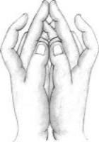 (慧律法师开示手印与图中稍有不同, 无名指要弯曲相对, 视频: https://v.youku.com/v_show/id_XNTY5MTEyNDY4.html )